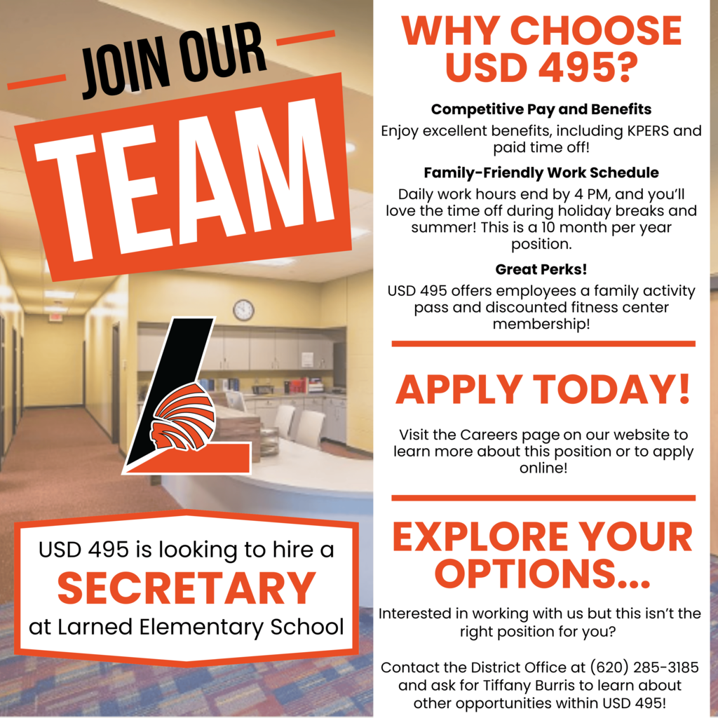 The USD 495 Board of Education will hold its regular monthly meeting tonight, Monday, July 7 at 6 PM at the District Office. Join us in person or catch the Board Brief later for all the highlights. #larnedpride